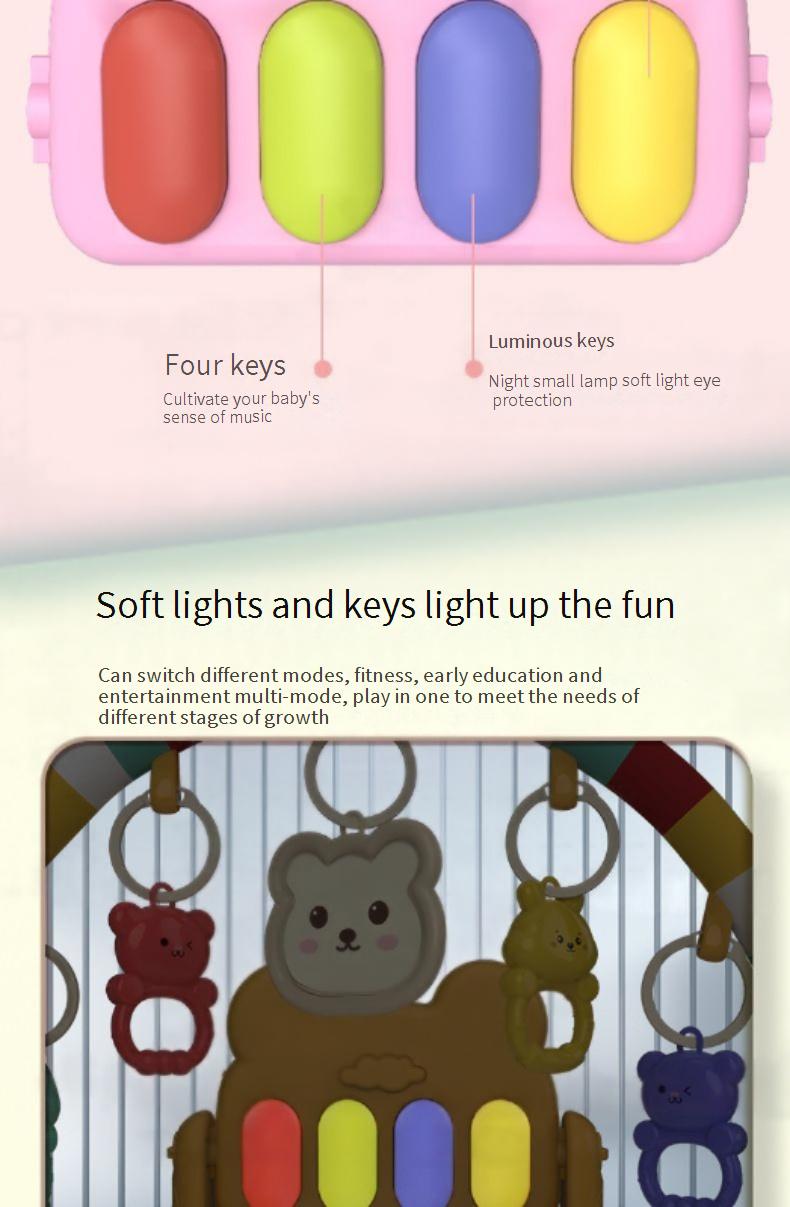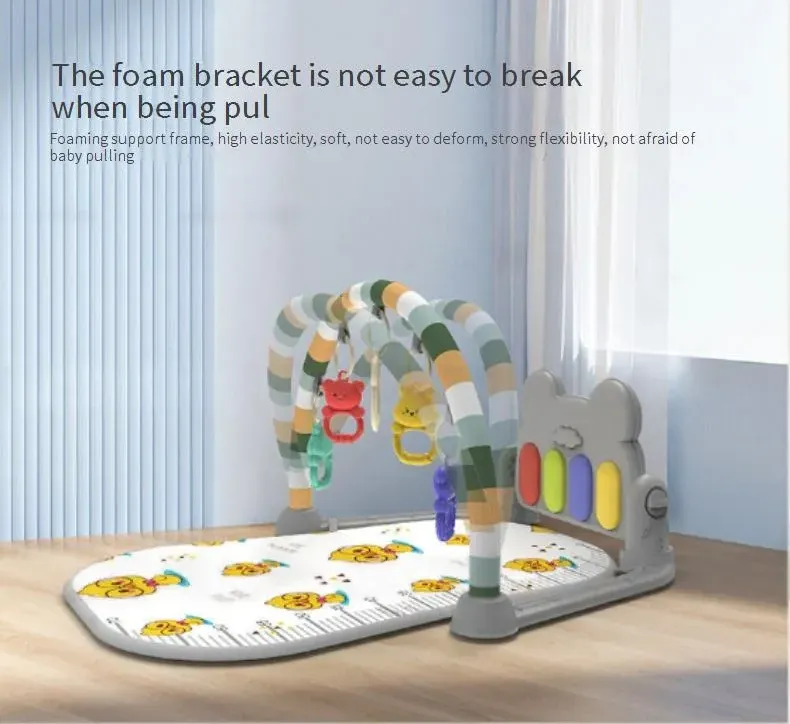 creates an interactive space where play and development go hand in hand. Designed with hanging toyssensory textures, and a built-in piano, it keeps little ones engaged while strengthening essential skils. Encouragingmovement, discovery, and coordination, every moment on the mat is an opportunity for growth and joy!