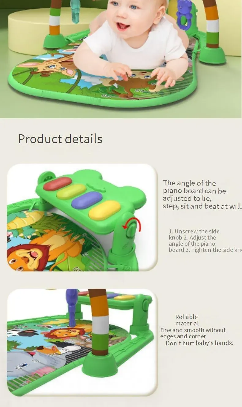 Discover the joy of percussive sounds with interactive toys that foster a sense of rhythm andmusicality, turning playtime into a symphony of learning and laughter for your growing infantCrafted from baby-safe, non-toxic materials, this activity gym ensures a secure and comfortableenvironment for your little one to explore, play, and develop essential skils from the